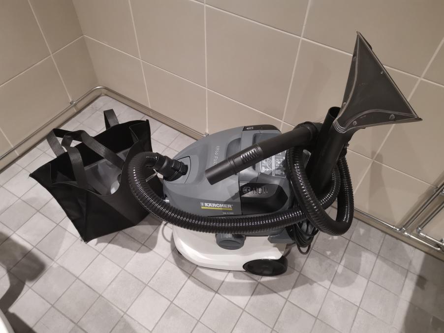 Yhteiseen käyttöön on hankittu tekstiilipesuri, jolla voi pestä mattoja ja huonekaluja.